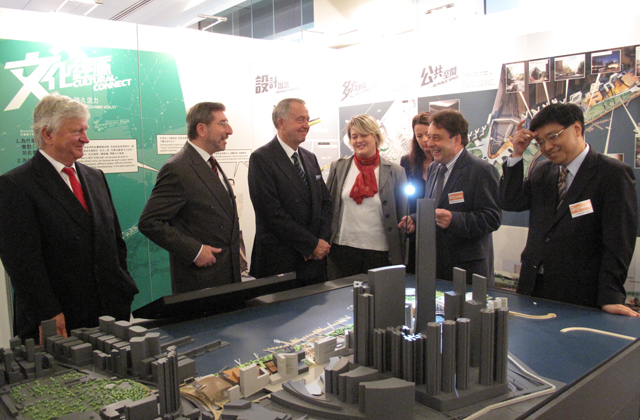 [图片:行政总裁谢卓飞先生向德国文化部长代表简介西九文化区的进展。]