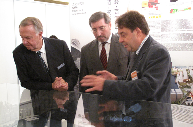 [图片:行政总裁谢卓飞先生向各国领事简介西九文化区的进展。]