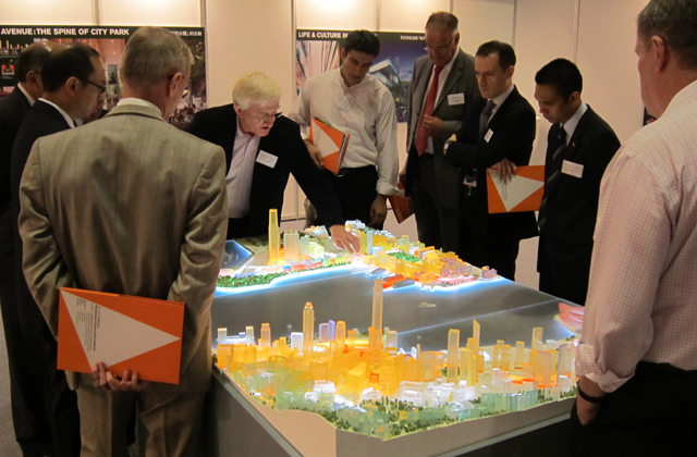 [图片:Foster + Partners 的 Mr Spencer de Gray 向各国领事介绍其概念图则方案。]